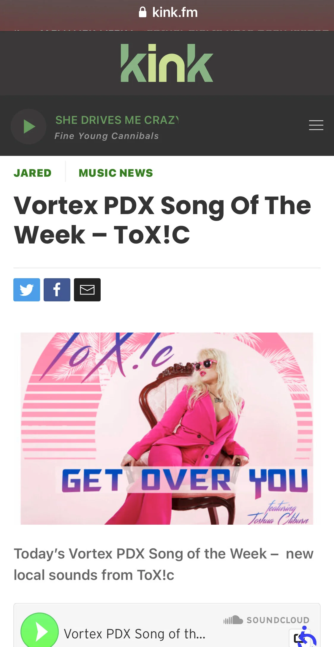 “Get Over You” feat Joshua Cliburn is the featured PDX song of the week played on KINK.FM